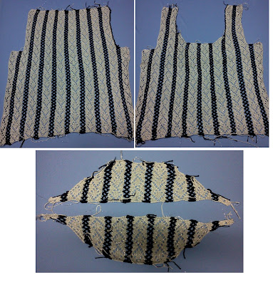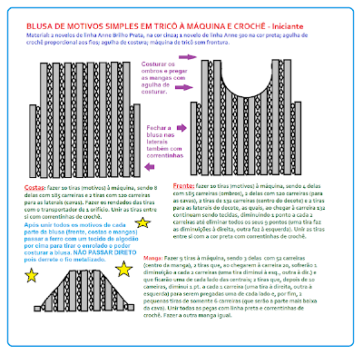 Se você estava aí matutando até fazer beicinho, achando que tricô à máquina era um bicho do outro mundo - acabei de resolver essa sua questão existencial. É moleza, iniciante tira de letra (é só saber laçar 9 agulhas, passar pelo desafio inicial da primeira carreira - que é trancada porque a linha é de algodão - seguir fazendo as tiras, transportando pacientemente os pontinhos para fazer os rendados, arrematando folgadinho a última carreira) e TCHARAM!!! Taí sua blusa toda emendadinha no crochê, diferente, única e muito bonita.