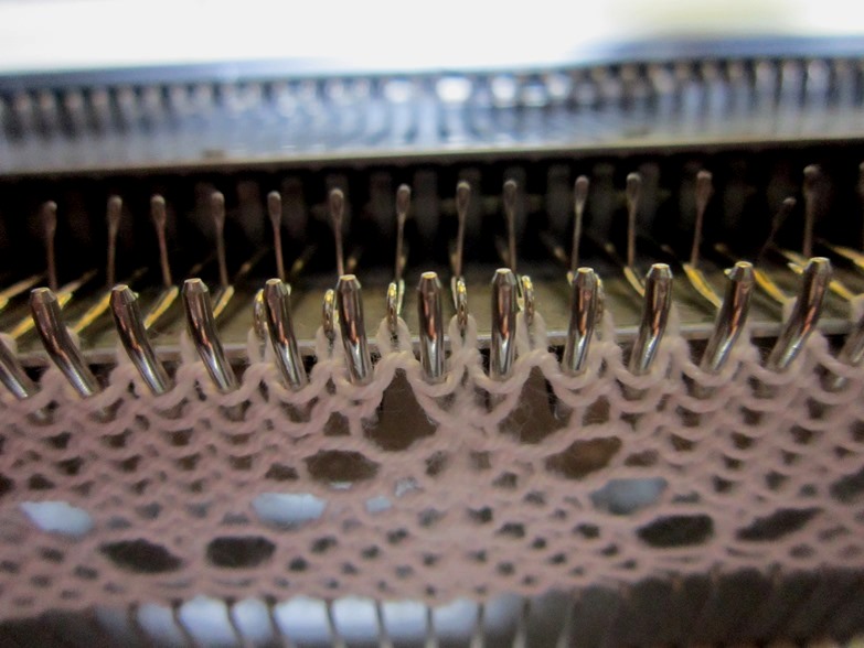 Tece mais duas carreiras e aquelas duas agulhas vazias formam esses buracos aqui. |