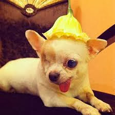 É uma chihuahua de cinco aninhos, que só tem um olho e uma linguinha que vive pendurada - repito: como não apaixonar? Seu nome é Yogurt, a cachorrinha Pirata...