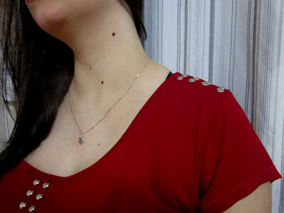 Com malha de viscose que eu havia comprado prá mim, mas novamente achei que o melhor uso era fazer prá ela... Fala a verdade: não seria um desperdício fazer uma blusa vermelha prá uma velha acabadinha que tá só o pó, que quase não sai de casa? Já a Lola, assim tão linda - nada é desperdício nela...