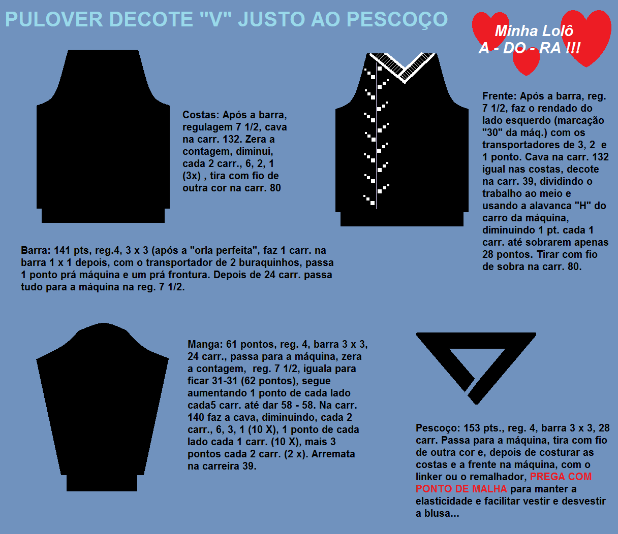 Tem que ser entusiasmada mesmo, e não tem que pedir desculpas, este pulover ficou um luxo e é bem simples.