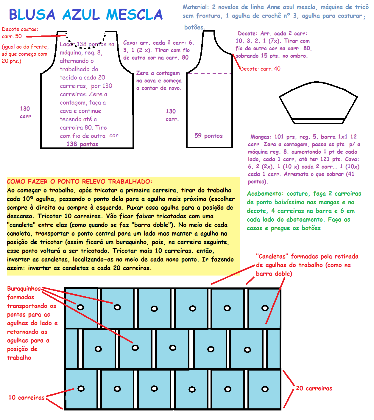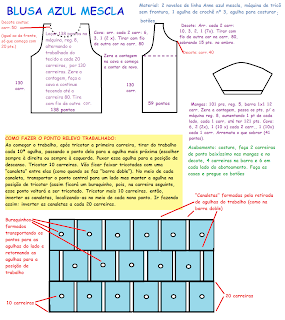 Fácil, bonita, versátil e quase de graça... Melhor que isso só de graça mesmo... Melhor que isso só se eu fizesse uma prá você (bem que você queria - e eu também... Já pensou, eu com saúde e tempo de sobra prá espalhar uma belezurinha dessas pelo mundo afora, ficar rica e famosa, dominar o mundo, quer dizer ganhar uma graninha? Ai, ai, sonhar não paga nada...). Bom, eu dou a inspiração, a foto prá vocês verem como é que fica linda; dou a receitinha, explico como faz o trabalhado do ponto (um jeito fácil de fazer algo com cara de verão sem ter que se preocupar com o carro verão - você faz tranquila usando o transportador, parece que deu trabalho, mas é moleza... e não precisa de frontura, então, se você não tem uma, tá beleza prá você...) e ainda digo onde comprar baratinho a linha (na Aslan (só tem cor lisa) ou no Bazar Horizonte (tem mescla) você espia o preço - se for mais barato que no armarinho perto da sua casa, compra lá, mas lembra que ainda tem taxa de entrega, então, às vezes, o barato sai caro...). Com, no máximo, R$16,00 reais você vai ter uma linda blusa, fresquinha, de algodão, prá você andar bonita sem ter que usar somente camisetinhas... (Ah, reparou que, com esse trabalhinho, você foge do batido ponto meia, faz uma blusa com cara de trabalhada sem se apavorar de medo se você for iniciante? Hehehe, não conta prá ninguém... Vão achar que deu trabalho...)