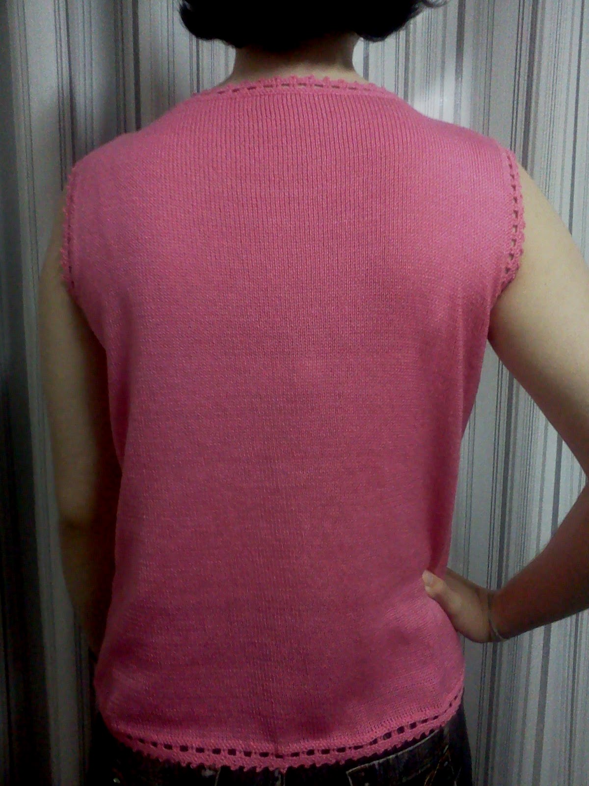 - Primeiro, foi feita para minha mamãezinha... Dei prá ela no Natal, esta blusa de crochê muito linda AQUI e ela, como uma senhora muito decente, queria algo para usar por baixo. Rapidinho, fiz prá ela, como boa filha que sou...