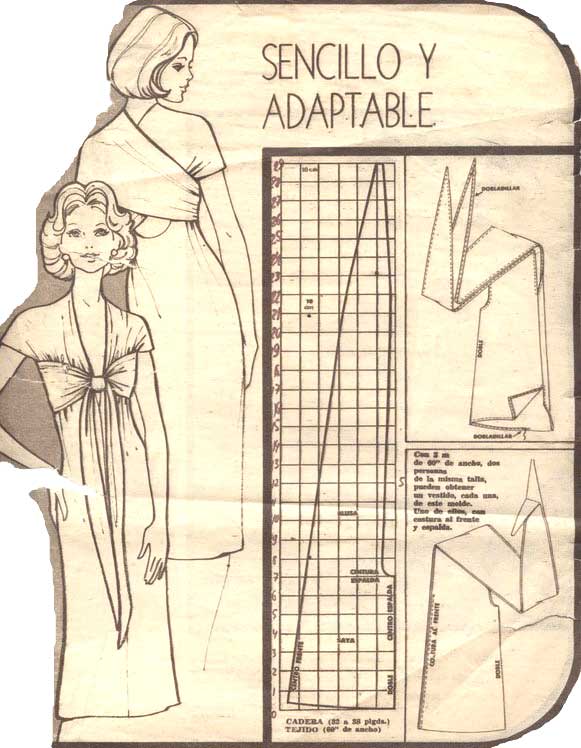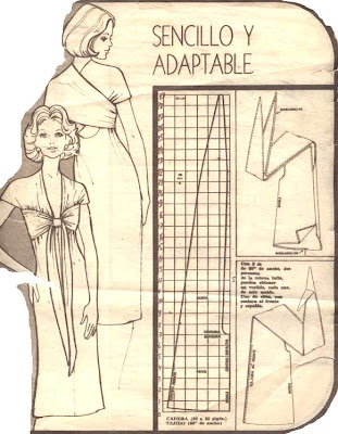 - Achei esse molde em um site russo, alguém estava pedindo prá outro alguém um molde desse tipo de vestido e então a mulher mostrava esses recortes velhos de uma revista em espanhol. Já procurei mas não sei onde foi - quando meu moleque chegar eu peço prá ele achar prá mim (que ele é um gênio, acha tudo, sabe tudo, conserta tudo...);
