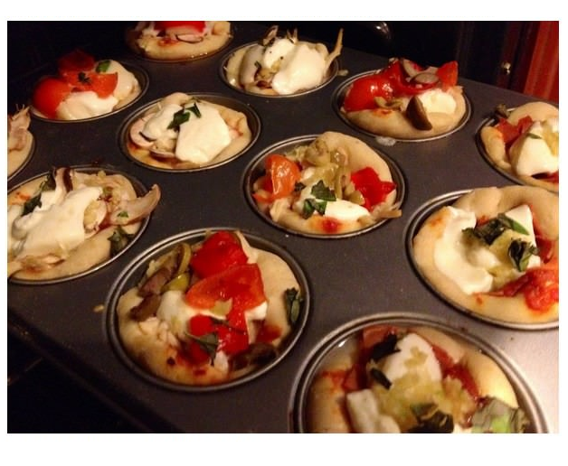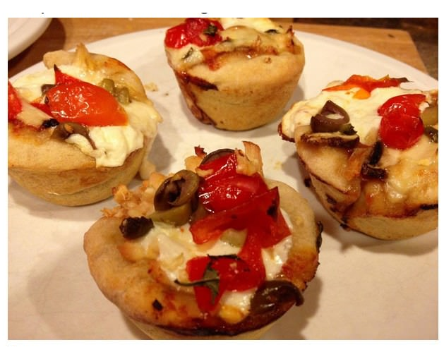 Pega aquela receitinha básica de massa de pão ou de pizza (ou faz "no olhômetro" mesmo, como eu: um tabletinho de fermento de pão, duas colheres de sopa de açúcar, uma colher (de café) de sal - esmaga tudo com o garfo, despeja um copo de leite morno, desmancha um pouco de manteiga ou margarina e deixa "espumar". Daí vai juntando farinha de trigo - primeiro com uma colher e, quando não der mais prá mexer, vai na mão mesmo, até desgrudar. Deixa crescer, divide em bolinhas e abre cada uma na forminha, untada com manteiga ou óleo, com os dedos mesmo - MOLEZA!!!) e se diverte montando essas delícias: