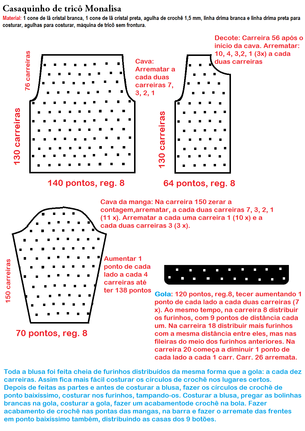 Não tem máquina? Faz na mão, com lã família, depois prega as bolinhas feitas com lã bem fininha que fica lindo. Ou faz de cristal mesmo, só que no crochê, todinha de ponto alto e depois prega as bolinhas. O importante é esse visual clássico, que toda mulher gosta de ter de vez em quando.