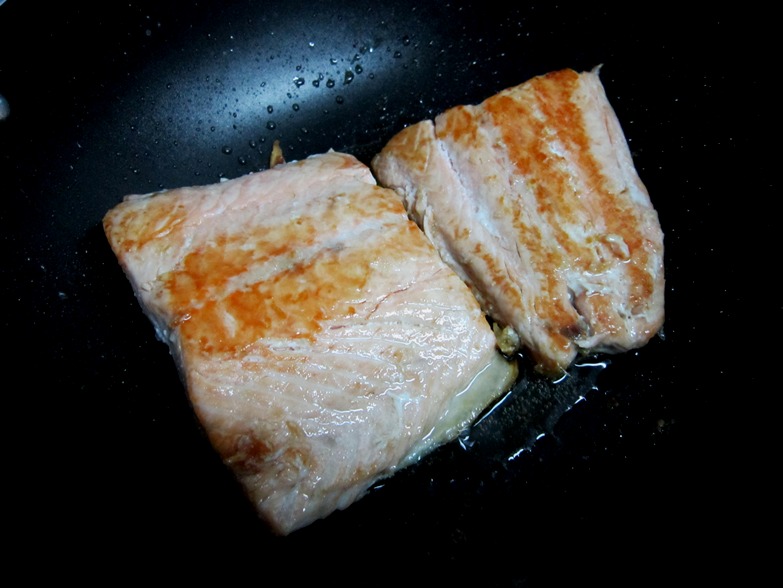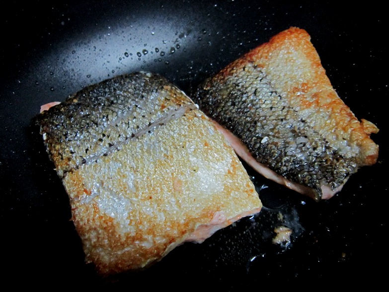 Quando fica com a cara que eu quero, eu tiro com a espátula, reservo, e parto pro MOLHO na mesma panela (que agora tem mais óleo do que antes, porque soltou gordurinha do peixe).