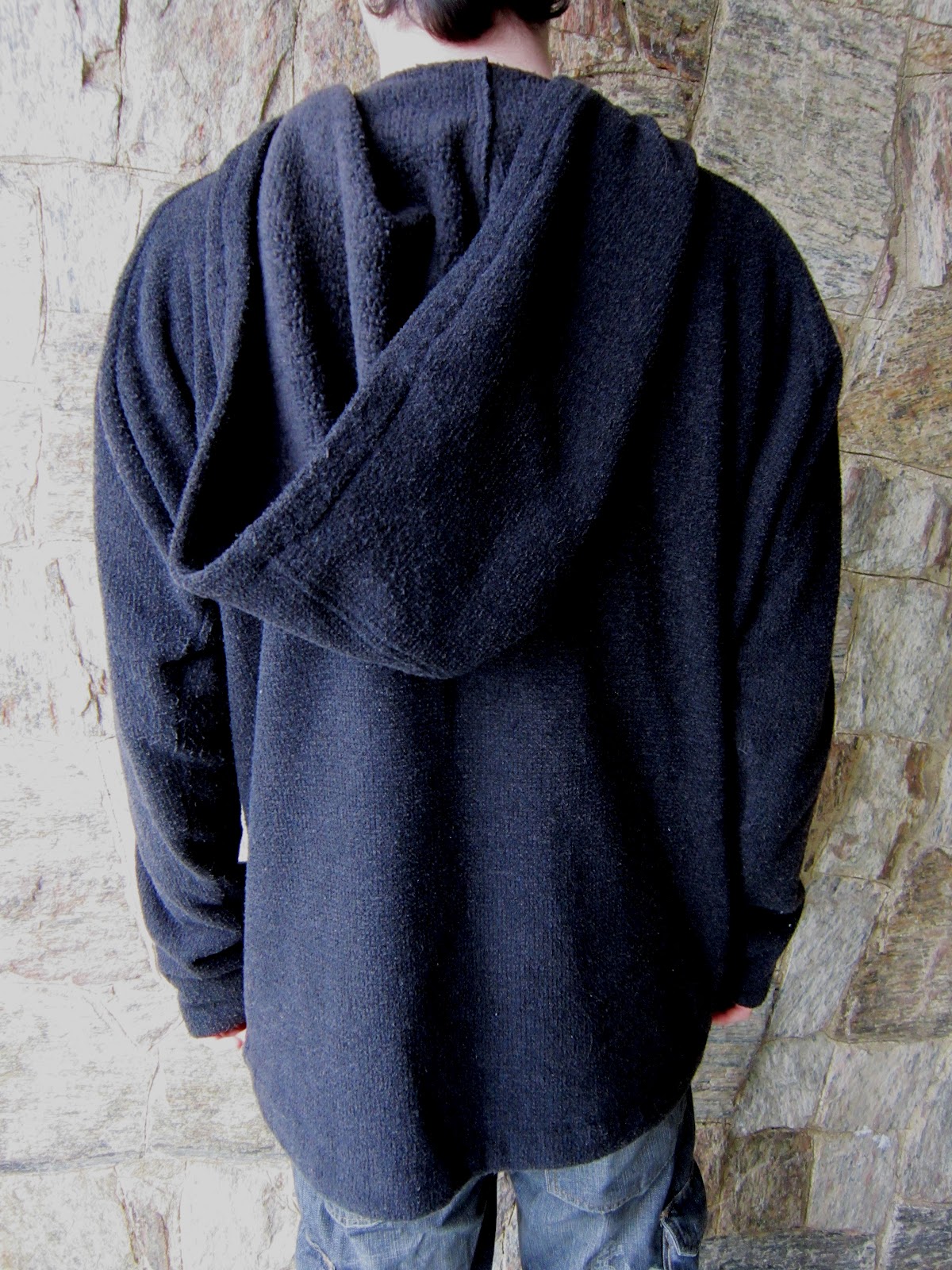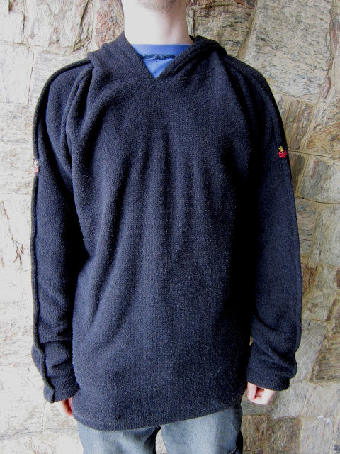 Na verdade, o tecido se chama tweed. É uma malha que, de um lado é crespinha, quase como um atoalhado e, do outro, é flanelada. Fiz este blusão pro meu filho com apenas 24 reais, 1,5 metro do tecido. Se alguém quiser o molde me avise que eu posso postar, mas fiz copiando de um blusão que ele já tem. Cortei as mangas um pouco mais largas (2 cm) e depois fiz uma prega bem no centro. Daí costurei as etiquetas, prá fazer um detalhe lega. Ficou uma delícia - capuz, bolso canguru, moleza de fazer.